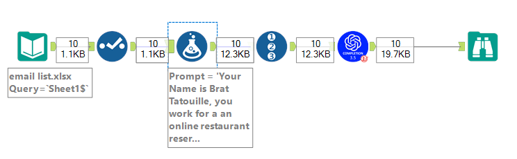 Once you have successfully downloaded the Macro and placed it in your Macro's folder, the fun begins! The first step of the process is to create a prompt (or a question) inside Alteryx. Luckily, you can easily do that with a formula tool. The cool thing about this is that you can use the existing fields in your data to tailor each prompt to each row inside your dataset. A unique prompt will then lead to a unique output that will be tailored to the information you provide inside that prompt. Although this did not seem revolutionary to me at first, I quickly realized I could now use this macro to send a batch of unique prompts to Chat GPT and have the answers I gathered neatly stored in a table inside Alteryx, ready for additional processing and analysis. To me, this batch process is the central advantage of using Chat GPT directly in Alteryx and it opens up a world of possible applications.