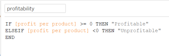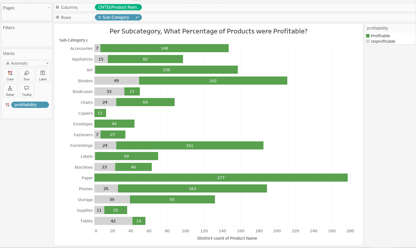3) Now that we have this, the next step is to identify how many products within each sub-category were actually profitable. To do that, we need a new calculated field.