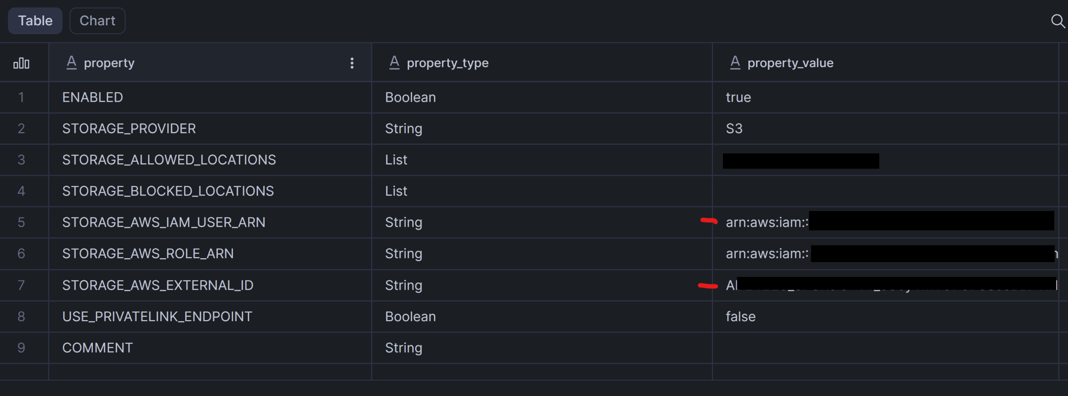 - View your storage integration details by running the below code with the name of your storage replacing the “<text>” in a Snowflake SQL worksheet.