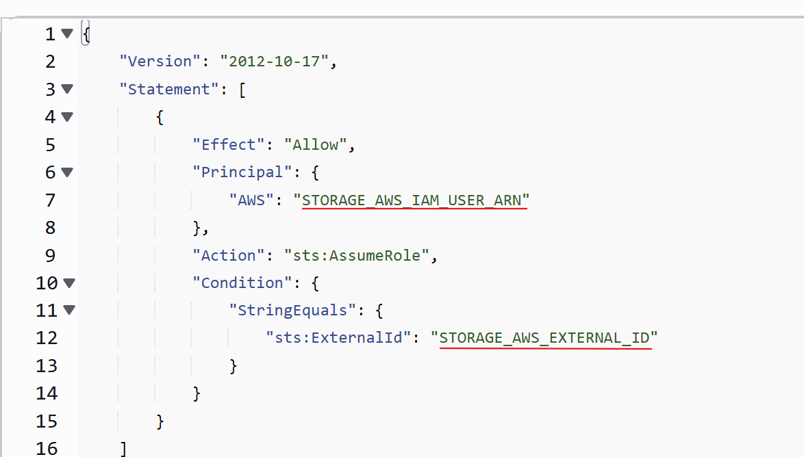 - d - Paste your details from the Snowflake Storage Integration into the configuration file and save. Once this is complete, a secure connection between Snowflake and AWS will finalized allowing for the loading of data into external stages.