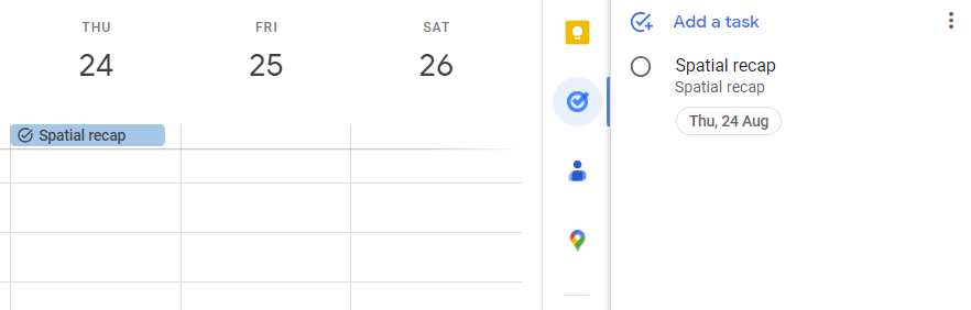 2.Create your daily/weekly tasks in Google Calendar. I find it useful because they remind me of the tasks that need to be completed during that day. I usually put them in my calendar and mark them as done after I complete them. You can put more tasks if you want for that day and if you tick them from the menu they will disappear from your calendar.