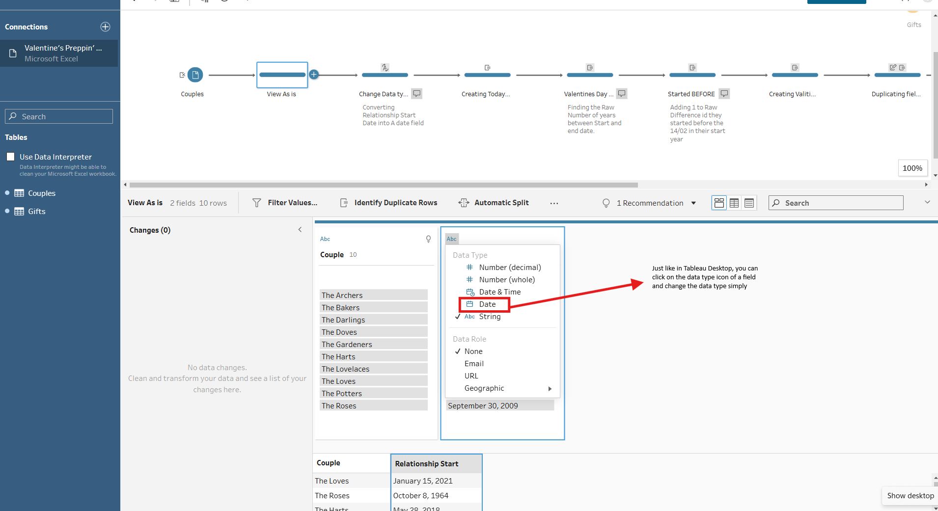 Step 1 - Converting the Relationship Start Date into a Date Field