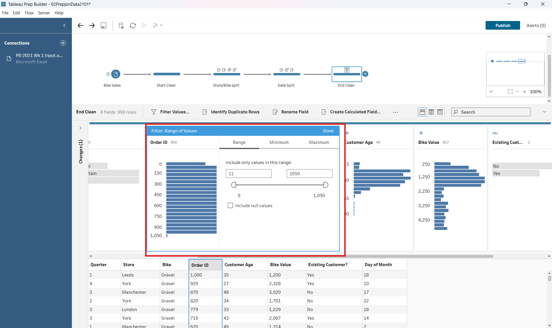 Comparing my process for this in Power Query and Tableau Prep meant thinking about some of the functions differently, and was a good way to begin getting my head around this new software.