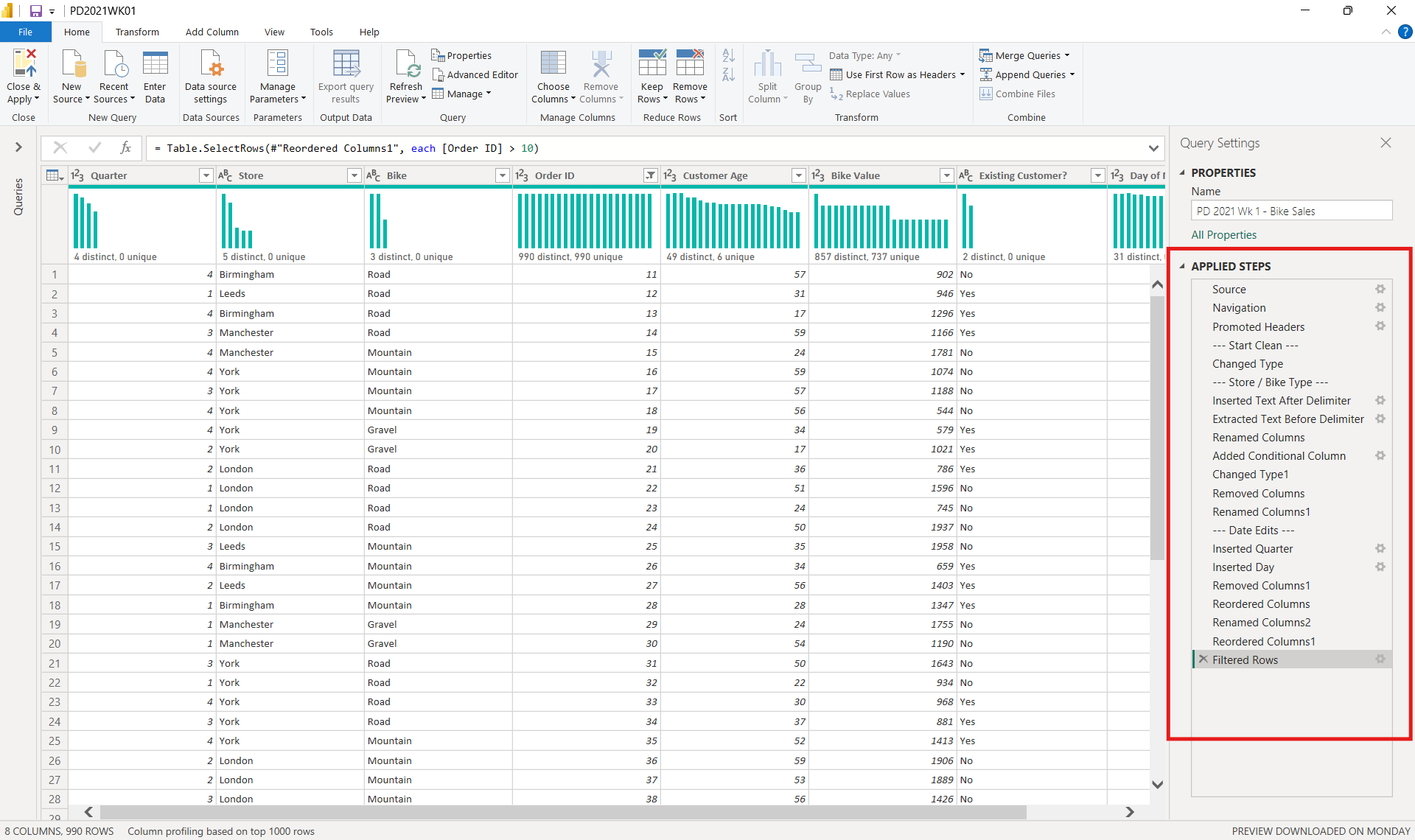 I decided to start with the easier January challenges which are designed as an introduction to Tableau Prep. Here I will go through the challenge from Week 1, 2021. I had already completed this in Tableau Prep, so followed these same steps in Power Query.