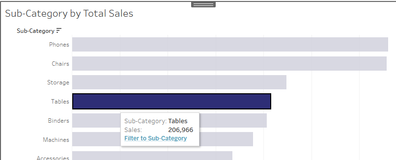 Below, we can see that this defaults to 'All' when no bar is selected, but gives a specific title when 'Tables' is chosen: