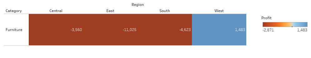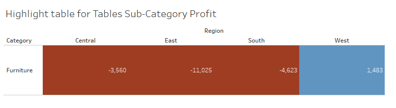 If they click the hyperlink, Tableau will automatically take them to the Profit heatmap, filtered to only the 'Tables' sub-category (which falls under the broader category of 'Furniture':