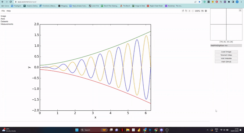 3) It will now take you to a page with your images and a crosshair cursor. Here select the minimum x value followed by the maximum x value. Then do the same for the y axis.