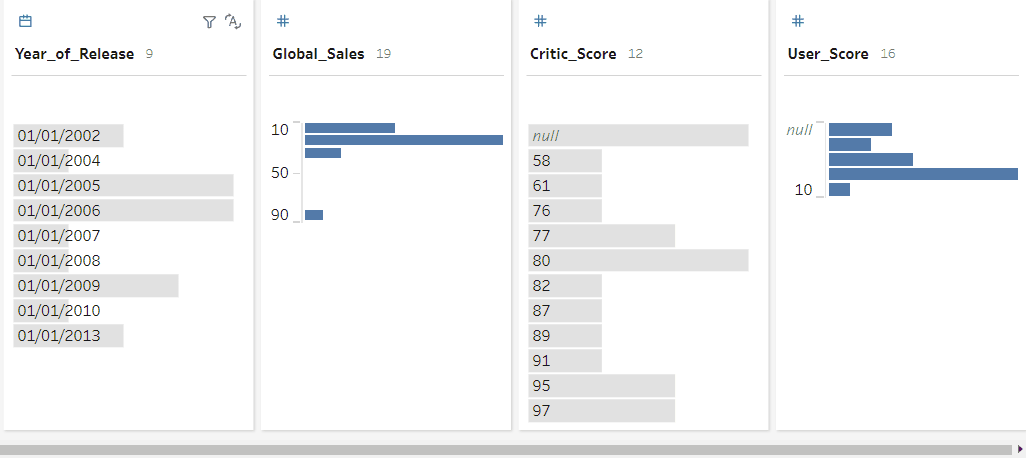 For our use case, we need data on all of our columns so if we cannot have null data and need to get rid of them. We can see that we still have null data for the critic and user scores. We want to make sure to remove those games from our data.