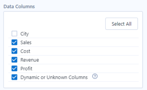 Next, we have to select the data columns. These are the values that are going to be flipped and transformed from multiple columns into a single "value" column. These are the green in above and usually value but not always, sometimes they can be subcategories of your main column or just any other column. Alteryx kindly unselects our key column as we should never include the pivoted column. The rest can all be ticked. If you no longer need a set of data you can uncheck the box but it will be removed from the data set.