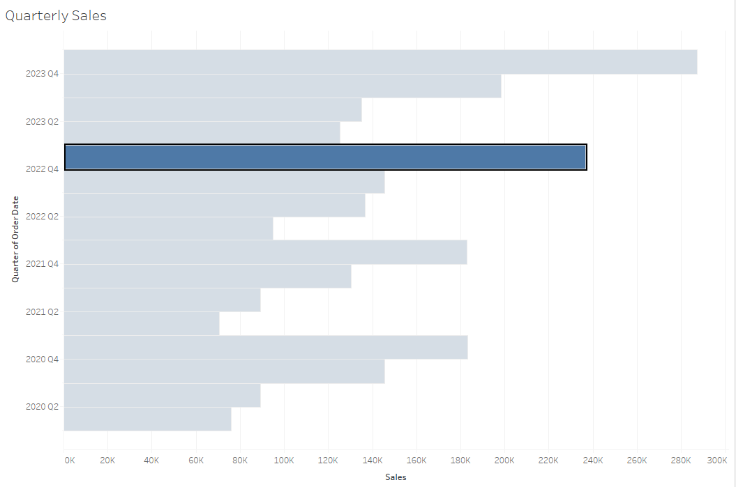 This can be slightly annoying for someone like me who compulsively clicks their mouse, or cause issues with the ability to read the rest of a chart when clicking a mark to activate a parameter or set action. Here's how to use a calculated field and a highlight action to turn off this highlighting feature.