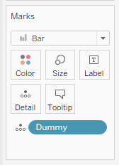 - Drag your dummy field onto "Detail" on the marks card. This gives us access to the field within our worksheet.