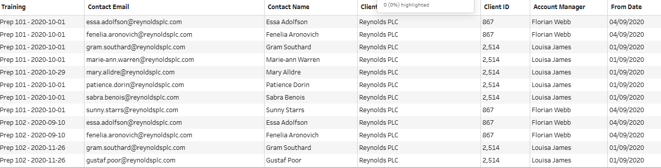 In this challenge, we work with data covering client attendance at our training sessions, as well as which account managers are responsible for each client. However, historical account-ownership records introduce duplication into the dataset, and we will explore how to identify and resolve this issue.