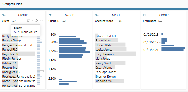 Exploring the dataset, we can find instances where a single client is associated with multiple account managers, start dates, and occasionally even multiple client IDs.