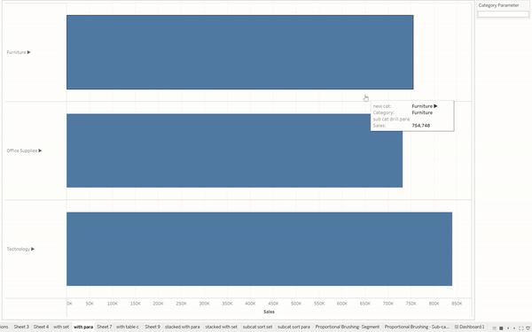 These actions allow you to change the values within a parameter by a selection made in the source sheet. Parameter and set actions can often be used to achieve the same thing.