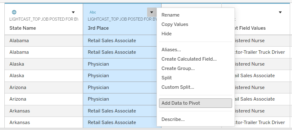 However when pivoting on Tableau Desktop it only allows you to pivot columns to rows.