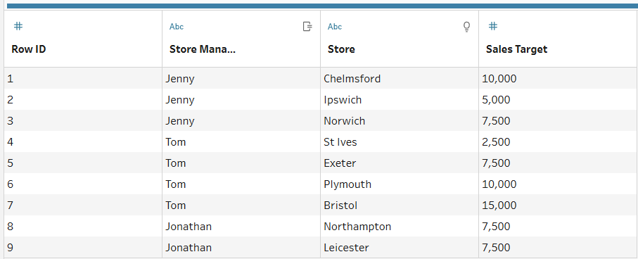 The table will look like below. Every manager will be repopulated based on the previous value in the Store Manager Column.