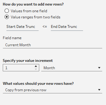 In Tableau Prep, there is helpful tool called "New Rows". Clicking it brings up this screen: