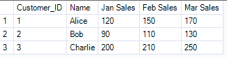 Using the dataset below, we want to use transpose to pivot so that each month's sales becomes a row.