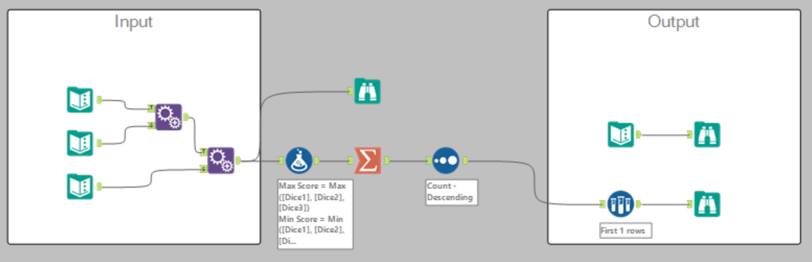 Instead, Alteryx is a low-code environment where the primary driver is dragging and dropping (much like Tableau). Alteryx flows typically start from inputting data (the little green book icon), which then flows through different tools before reaching the outcome. The advantage of this step-by-step approach is twofold: it is easily visible the order of operations that take place in order to go from the input to the output, and it is possible to track the progress of the pipeline as it goes along (instead of just at the beginning and end). With the code above, to get intermediate results the user would have to run only part of the code, or even edit it to split out different actions that happen in the same line or function.