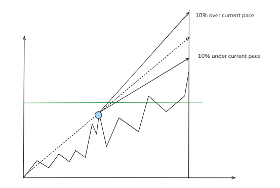 The statistical approach to this sort of challenge is usually to account for the amount of uncertainty that is present. The linear pacing model presumes a consistent amount of certainty throughout, but in actuality the beginning of the time period should be given less certainty and the end of the time period should be given more certainty. It might seem that those first 5 days of the year are under pace, but from a statistical perspective 5 days is far too small of a sample size to begin extrapolating out an entire year.