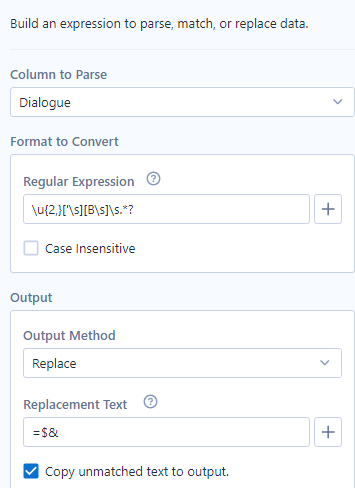 The middle two steps are specifically there to make sure the tool captures the character labelled as O'BRIEN, who is an edge case of name structure. The other part of this calculation that is important to mention is the question mark at the end that makes the .* non-greedy. This way, it stops every time it hits a new match for the regular expression. Otherwise, it would just keep on going to the end of the string. It is definitely worth noting that this operates under the assumption that we see this regular expression only if we are getting a new speaker. I did not look through all 178 episodes to ensure this, so I was lucky that this principle was consistent. If it was not, there might have been more parsing work to do.