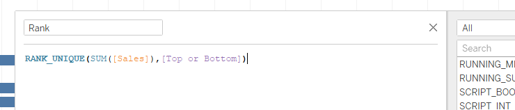 We now need to create a second Calculated Field called 'Filter for Top/Bottom':