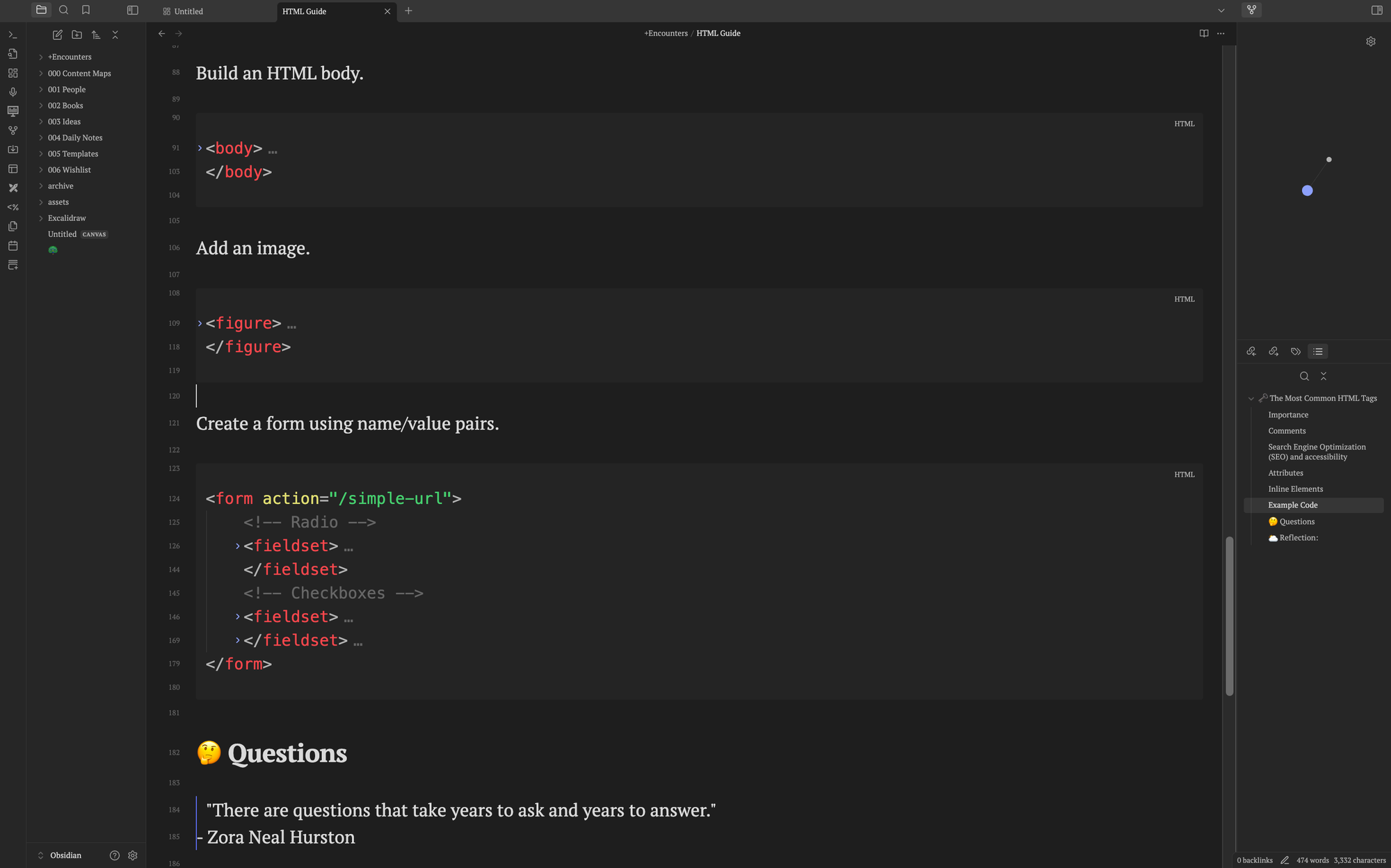 At the time of writing this post, it is harvest season for my TIL digital garden. I’ve got seventeen weeks of lecture notes, project research, and so much more to process, query, and connect into content I can share.
