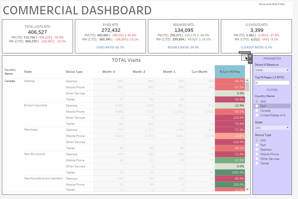 Now the button is ready. We just need to put the button in the proper position in the dashboard and format its size. By pressing "ALT" key and mouse click, the button will show and hide filter on Dashboard view. On presentation view, switch is easily done by clicking on the button image.