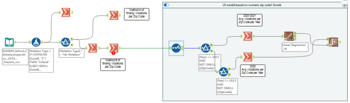 My hope was to have a model that could predict how many violations school cafeterias would have within a zip code in future years based on previous years of data.