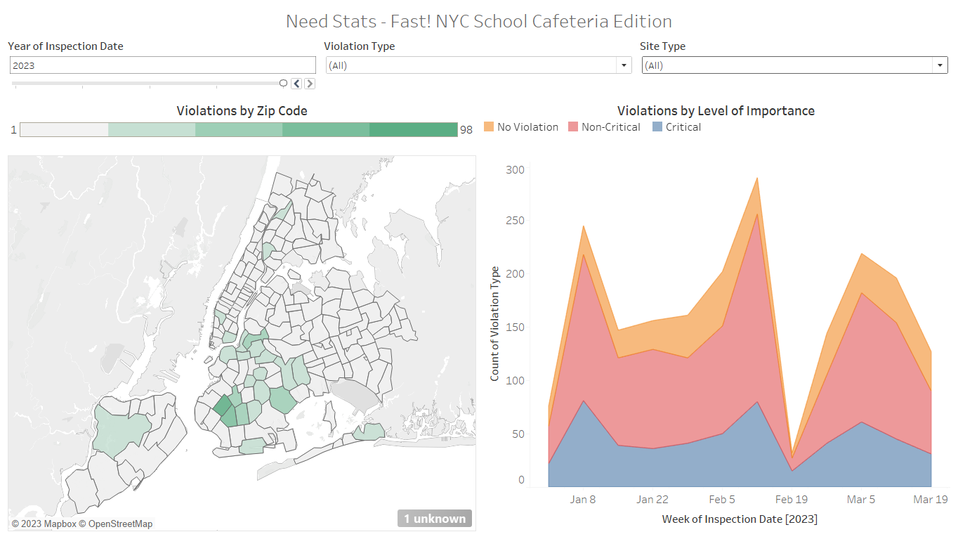 That includes the start to finish process of data prep, wireframing, dashboard creation, presentation, and writing up a blog like this one. This fair Friday we were tasked with analyzing data about school cafeteria inspections in NYC, provided by NYC Open Data.
