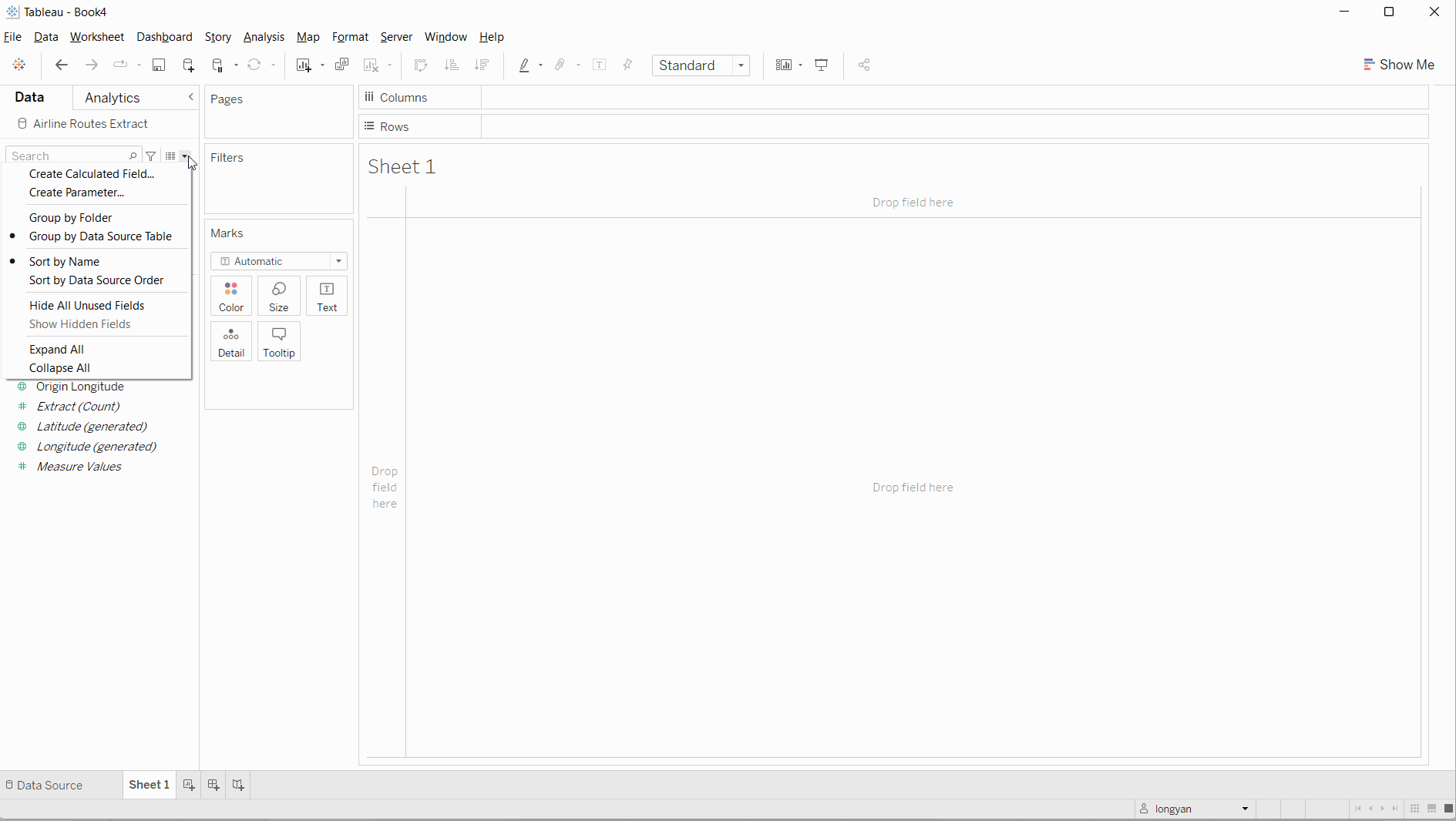This is because we do not have specific paths with origin and destination airports for it. In another word, there is no dimension in Detail to split it up. So we need to create another new calculated field for it. We call it Route.