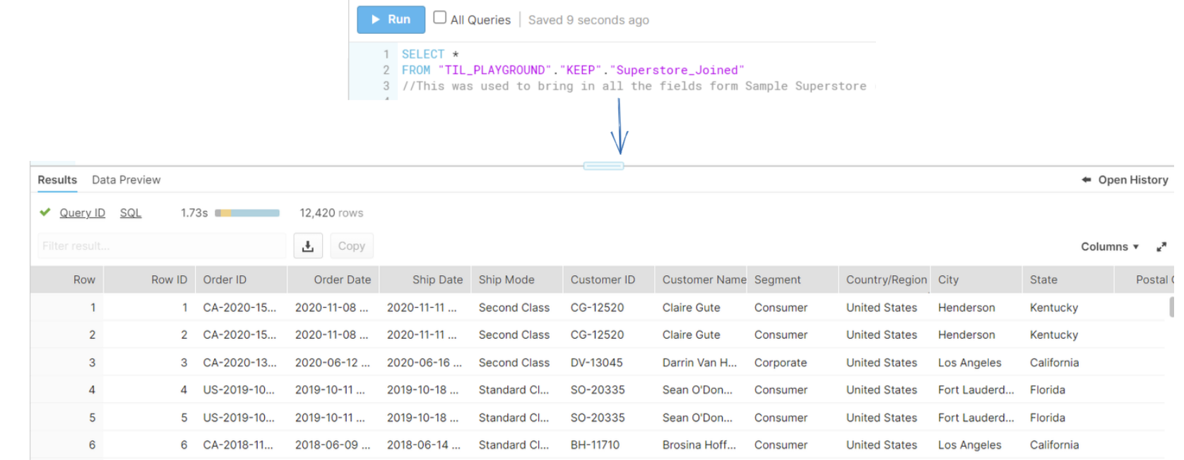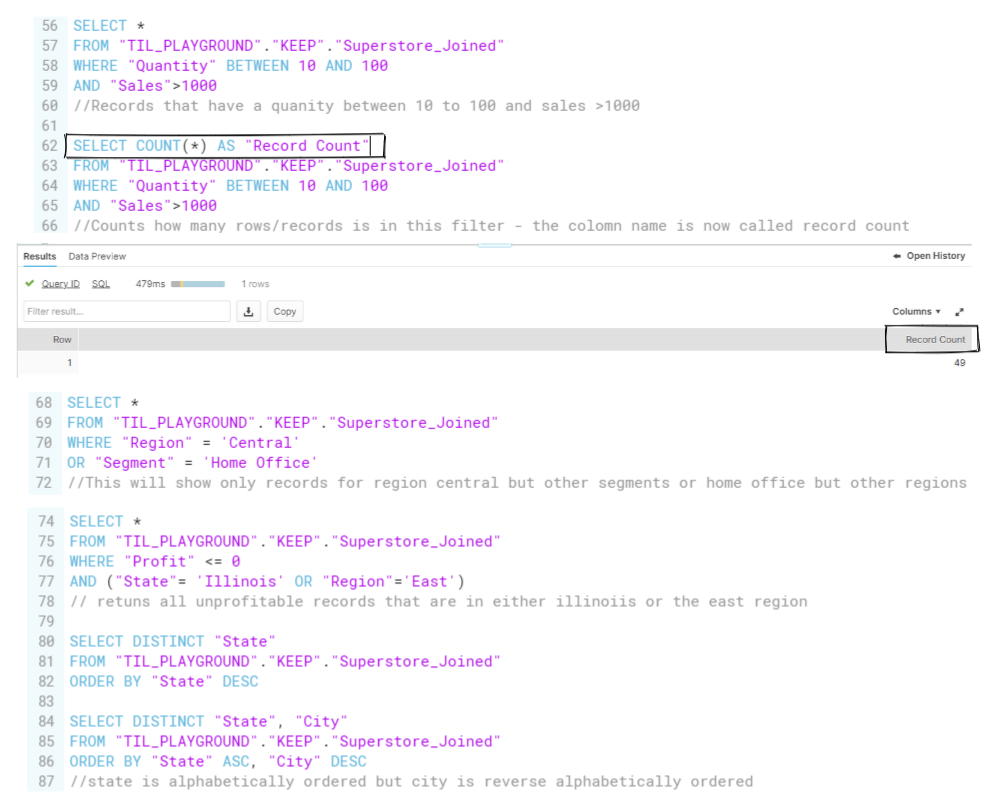 The order below is the structure you need to follow when writing SQL in Snowflake. Its similar to the flows of Alteryx (e.g. Input tool, Filter tool, select tool, summarize)
