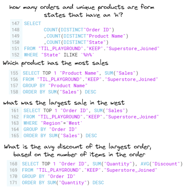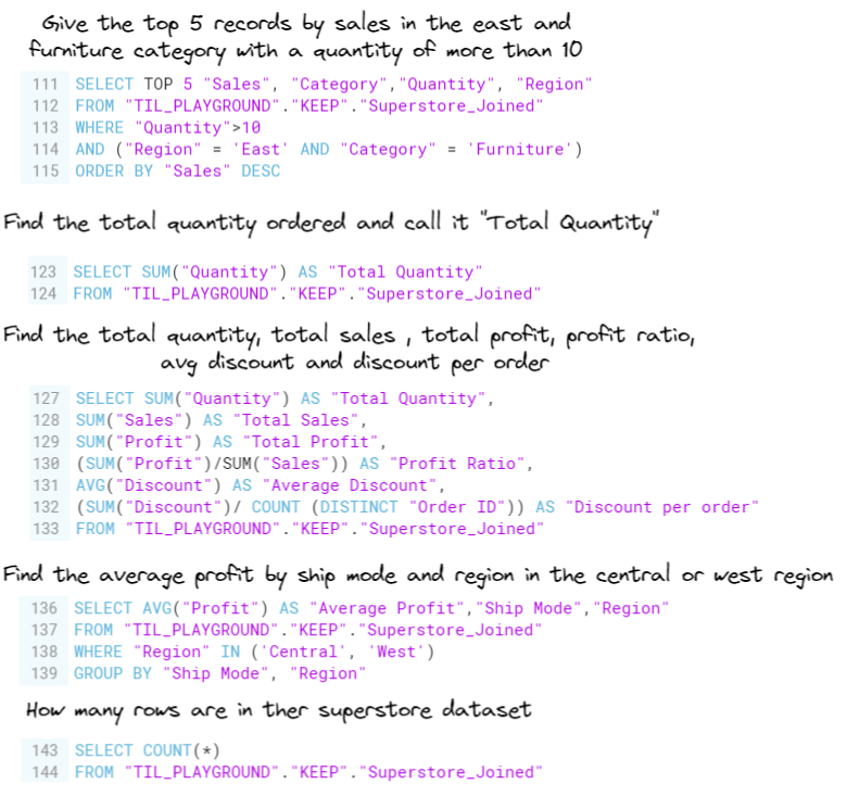 - FROM "...." - which data file we are bringing in