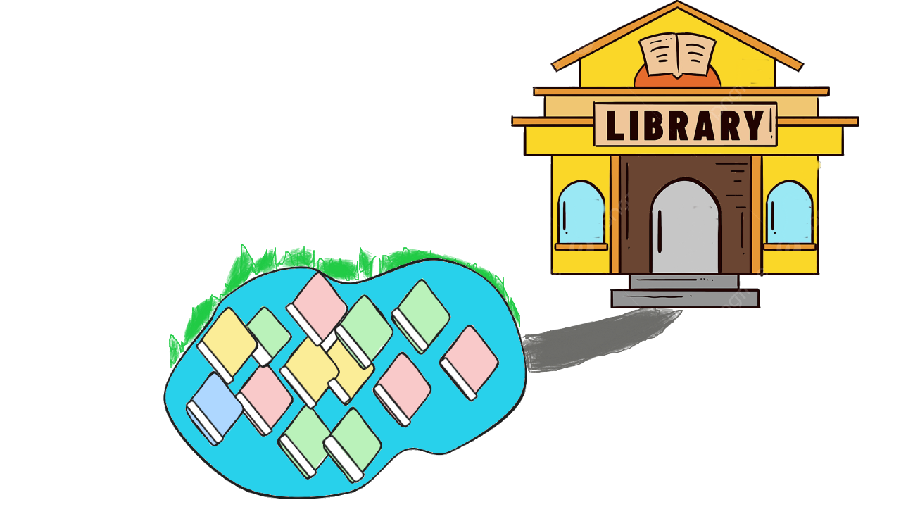 So imagine a paradise for bookworms were the structured library is located at the same spot as the adjoining book lake. A bookworm doesn’t have to switch location to access the lake or vice versa.