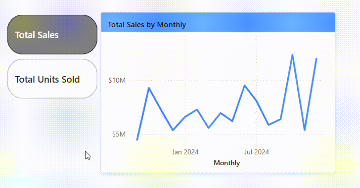 The aim of this blog is to swap the measures Sales and Units sold dynamically with buttons in the chart. We are starting by building a line chart.