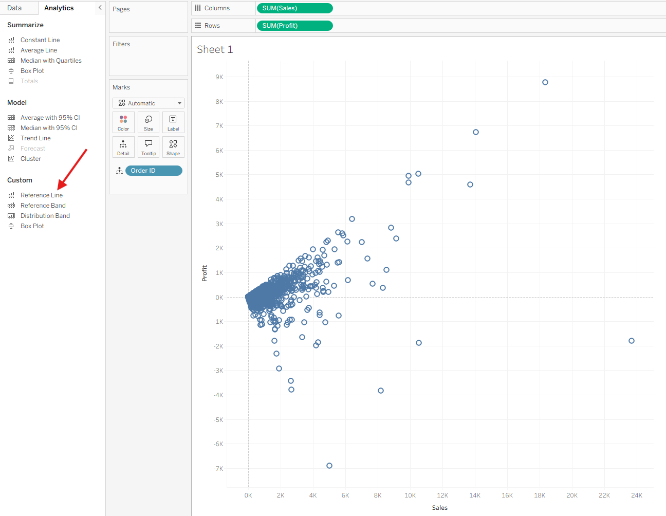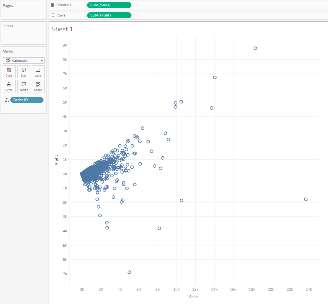 You now have a standard Sales vs. Profit scatter plot.