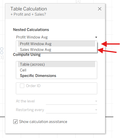 You’ll see Nested Calculations, because your Boolean depends on the two WINDOW_AVG calcs.