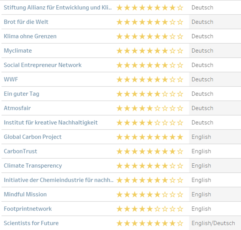 There is a list of websites with their titles, stars (rating/ranking) and languages.