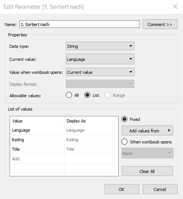 For each one, create a parameter with a list of items you want to put on the sorting.