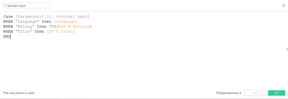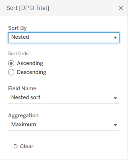 Right click on the field you want to sort (here is the title), chose Nested type under Sort By and the Field Name is the combined calculated field we just created.