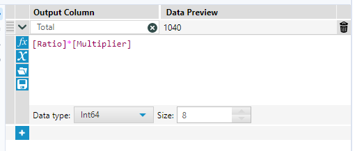 Add a Formula tool and multiply the Ratio by the Multiplier, name the new column "Total".