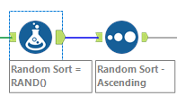Now drag in a Formula tool and create a new row called "Random Sort" using the formula RAND(). Now sort the data by the newly created Random sort column using a Sort tool: