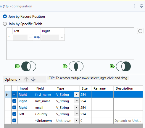 Join the Country field to the Customer Data table using a Join tool and set the tool to "Join on Record Position" since we have no common fields.