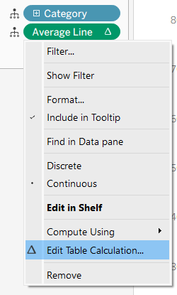 We need an average line. We can drag one from the analytics pane but instead we are going to make our own table calculation. To do this we need a window calculation.