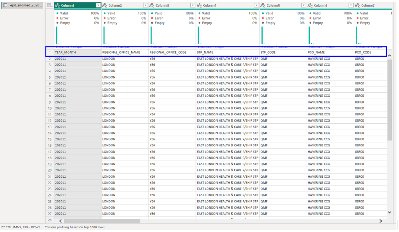 Fixing this is super easy, just click the option on the home pane that says "use first row as headers".