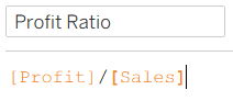 A row-level Profit Ratio field is given by the following calculation: