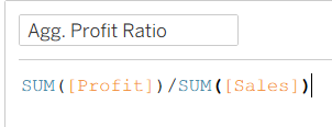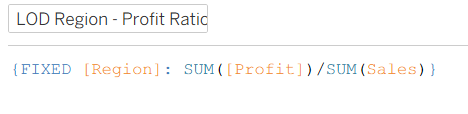 To calculate the profit ratio at the region-level, we make use of an aggregate calculation: