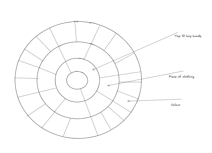 Our dataset for the day was the Internet Boy Band Database, which covers boy bands that charted on the US Billboard Hot 100 between 1980 and 2018. Given that it was the last day of both Dashboard Week and our training programme, I decided to experiment a bit and push my design skills by building a sunburst chart.