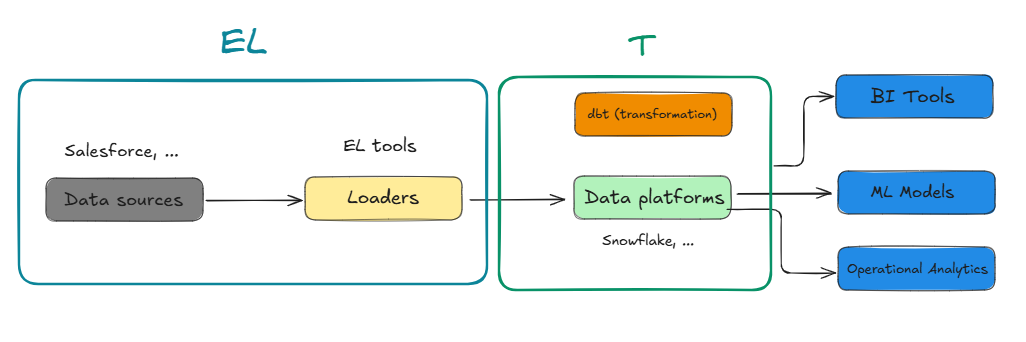 With the advent of cloud data warehouses like Snowflake, BigQuery, and Redshift, a new paradigm—ELT (Extract, Load, Transform)—emerged. Unlike the traditional ETL process, which transforms data before loading it into a database, ELT involves: