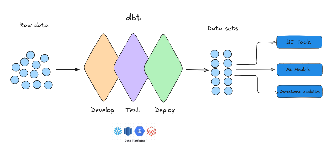At its core, dbt is a transformation tool that connects directly to your data warehouse. Here’s how it works: